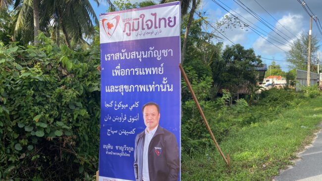 แต่พวกผมทำงานมาหนึ่งปีกว่า รู้ว่าพี่น้องประชาชนคิดอย่างไรกับเรา แม้แต่เรื่องนโยบายกัญชาเสรี เราไม่ใช่เสรีกัญชาเพื่อเปิดกว้าง เราแค่สนับสนุนกัญชาเพื่อการแพทย์และสุขภาพเท่านั้น ถ้าเยาวชนหรือพี่น้องประชาชนนำกัญชาไปเพื่อสันทนาการและมึนเมานั้น มันผิดทั้งกฎหมายและผิดหลักศาสนาอิสลาม และนี่คือนโยบายของพรรคภูมิใจไทย ซึ่งในวันนี้เป็นที่น่าเสียดายว่ากฎหมายยังไม่ผ่านสภา จึงต้องมีประกาศของกระทรวงสาธารณสุขไปควบคุมช่อดอกกัญชา เป็นสมุนไพรควบคุม “ซึ่งผู้ใดจะครอบครองช่อดอกกัญชาที่เกินจำนวนที่กฎหมายกำหนด ก็ต้องขออนุญาต จะไปครอบครองโดยพละการไม่ได้อยู่แล้ว”ส่วนผู้เสพก็เป็นหน้าที่ตำรวจที่จะต้องไปจับกุมต่อไป