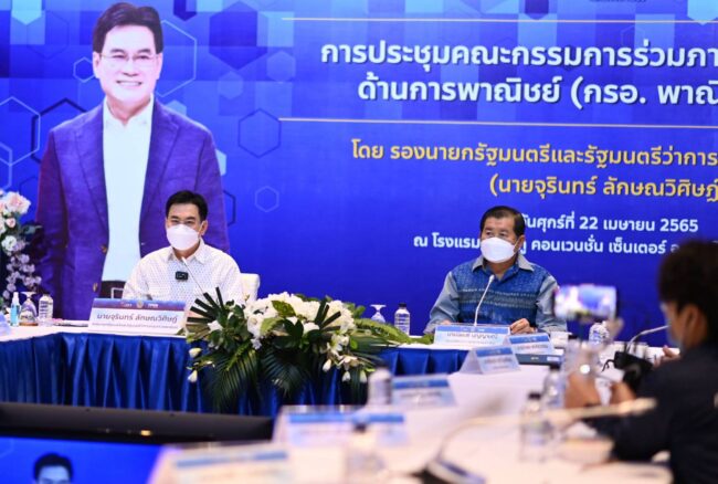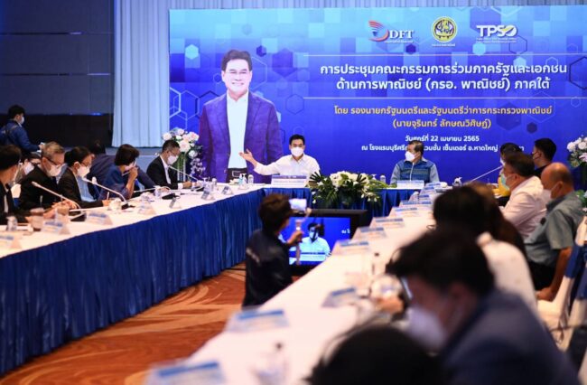 วันที่ 22 เมษายน 2565 นายจุรินทร์ ลักษณวิศิษฏ์ รองนายกรัฐมนตรีและรัฐมนตรีว่าการกระทรวงพาณิชย์ เป็นประธานการประชุมคณะกรรมการร่วมภาครัฐและเอกชนด้านการพาณิชย์ (กรอ.พาณิชย์) ภาคใต้ ณ ห้องแกรนด์บอลรูม โรงแรมบุรีศรีภู อ.หาดใหญ่ จ.สงขลา โดยมีนายนิพนธ์ บุญญามณี รัฐมนตรีช่วยว่าการกระทรวงมหาดไทย รองผวจ.สงขลา รองผวจ.ยะลาปลัดกระทรวงพาณิชย์ หัวหน้าส่วนราชการ และภาคเอกชนเข้าร่วมประชุม ณ ห้องแกรนด์บอลรูม โรงแรมบุรีศรีภู อ.หาดใหญ่ จ.สงขลา