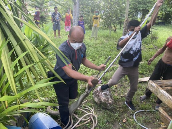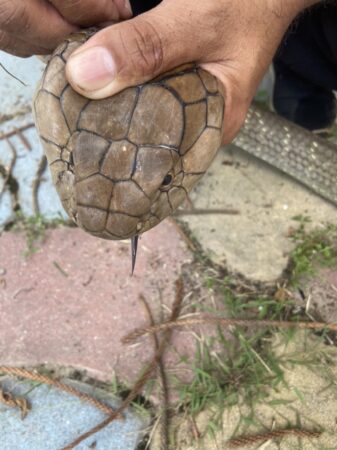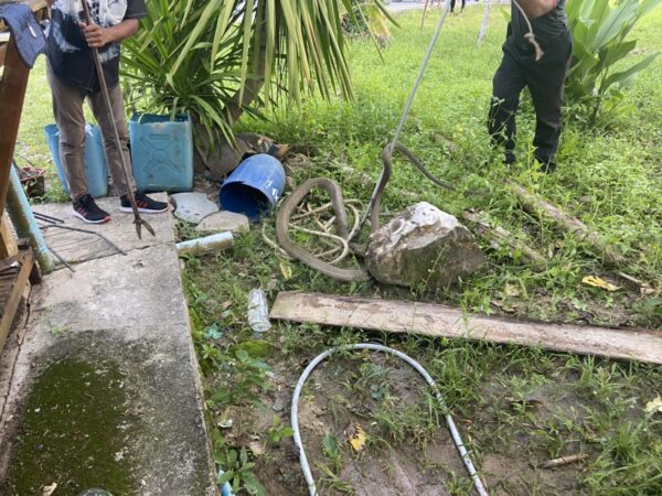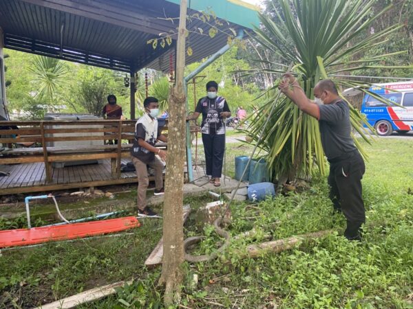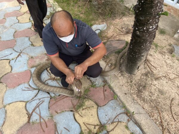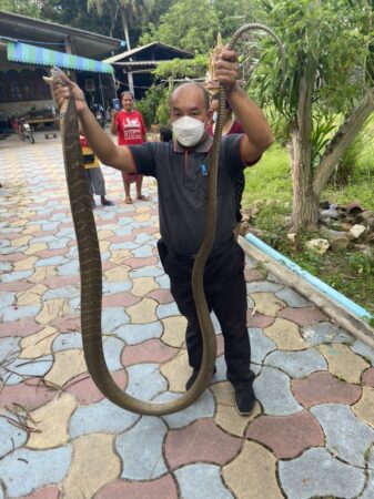 วันนี้ 23 เมษายน 2565 ที่ หน่วยกู้ภัยอริโยสามัคคีนาทวี อ.นาทวี จ.สงขลา ขณะที่ นายศุภชัย กีรติมากุล กำลังเข้ารับเวรเป็นเจ้าหน้าที่หน่วยกู้ภัยอยู่ในหน่วยกู้ภัยมูลนิธิอริโยสามัคคีนาทวี พร้อมกับคนอื่น ก็ได้รับแจ้งทางโทรศัพท์จากนายสมพล เต็มรัตน์ อายุ 57 ปี อยู่บ้านเลขที่ 97 ม.5 ต.ประกอบ อ.นาทวี จ.สงขลา ว่าขณะที่ตนเองกำลังเดินเล่นอยู่ที่บริเวณบ้าน ทันใดสายตาก็มองไปเห็นงูจงอางขนาดใหญ่ กำลังเลื้อยเข้าไปอยู่ที่ใต้ถุนบ้าน หลังตนเองตั้งสติได้ จึงรีบหาโทรศัพท์มือถือขึ้นมาแล้วรีบโทรแจ้งให้กู้ภัยฯช่วยมาจับงูให้ด้วย