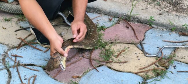ผวางูจงอาง เลื้อยเข้าใต้ถุนบ้าน แจ้งกู้ภัยมาจับ เชื่อให้โชค