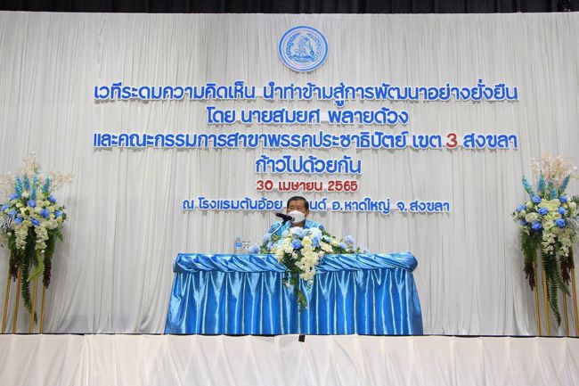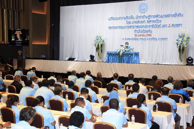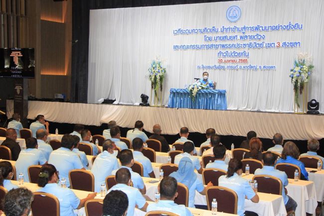 วันที่ 30 เมษายน 2565 ที่โรงแรมต้นอ้อย แกรนด์ อำเภอหาดใหญ่ จังหวัดสงขลา นายนิพนธ์ บุญญามณี รองหัวหน้าพรรคประชาธิปัตย์ เป็นประธานเปิดเวทีการประชุมระดมความคิดเห็น”นำท่าข้ามสู่การพัฒนาอย่างยั่งยืน” ของพรรคประชาธิปัตย์ เขต 3 จังหวัดสงขลา โดยมีนายสมยศ พลายด้วง ผู้สมัครส.ส.เขต 3 สงขลา พรรคประชาธิปัตย์ พร้อมด้วย แกนนำ สมาชิกพรรคปชป. แกนนำ ผู้แทนประชาชนในพื้นที่ตำบลท่าข้าม อำเภอหาดใหญ่ เข้าร่วมกว่า 200 คน
