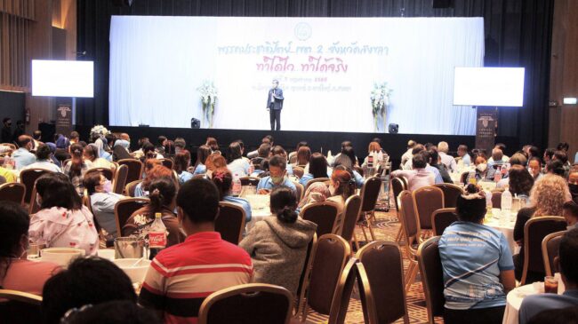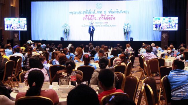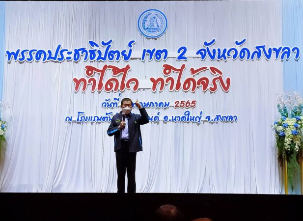 อนึ่ง ในวันนี้ 8 พ.ค.65 ได้มีกลุ่มสตรีสงขลานำโดยนางพรเอื้อ เชื้อแหลม นายกสมาคมผู้นำสตรีพัฒนาชุมชนจังหวัดสงขลา ได้นำกลุ่มสตรีในพื้นที่ 16 อำเภอของจังหวัดสงขลาจำนวนกว่า 300 คน เดินทางมาให้กำลังใจนายจุรินทร์ ลักษณวิศิษฏ์ และพรรคประชาธิปัตย์ ผ่านนายนิพนธ์ บุญญามณี รองหน.พรรค โดยให้บุคลากรพรรคประชาธิปัตย์ทุกคนได้มีกำลังกายและใจที่เข้มแข็งในการทำหน้าที่เพื่อพี่น้องประชาชนคงต่อไป โดยนางพรเอื้อ นายกสมาคมผู้นำสตรี กล่าวความรู้สึกตอนหนึ่งว่า “กลุ่มสตรีเรารักพรรคประชาธิปัตย์เกินร้อย และพรรคประชาธิปัตย์จะฟื้นตัวได้แน่นอน ถ้าพวกเราได้ร่วมกันหลายๆภาคส่วน โดยเฉพาะอย่างกลุ่มสตรีของเราที่มีความจริงใจ ไม่โกหก ไม่หลอกลวง จึงได้เกิดการรวมตัวมากันในวันนี้