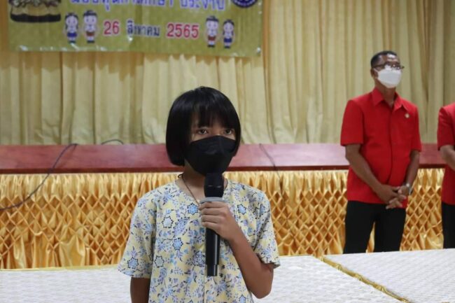 โดยนางเรวดี กล่าวขอบคุณ มูลนิธิ ที่ให้ความสำคัญด้านการศึกษาสนับสนุนแก่นักเรียน ลดภาระผู้ปกครอง และสร้างโอกาสทางการศึกษา ให้ได้เรียนรู้ต่อไป