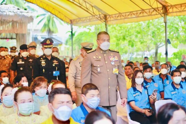 นายชูชาติ ฉุยกลม ประจำสำนักพระราชวังพิเศษ,พลเอกมณี จันทร์ทิพย์ ผู้แทนพิเศษรัฐบาล,พลตรีอุทิศ อนันตนานนท์ รองแม่ทัพภาค 4 ,พล.ต.ต.อาซาน จันทร์ศิริ ผู้บัญชาการตำรวจภูธรจังหวัดสงขลา ,พล.ต.ต.สุนทร เฉลิมเกียรติ รอง ผู้บัญชาการตำรวจตระเวนชายแดน พร้อมด้วย ผู้นำท้องที่ ผู้นำท้องถิ่น หัวหน้าส่วนราชการ และพี่น้องประชาชนในพื้นที่เข้าร่วมในพิธีเป็นจำนวนมาก