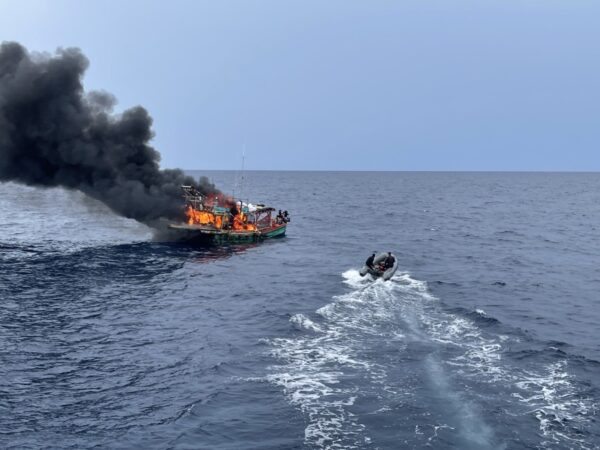 ขณะลักลอบทำการประมงคราดปลิงทะเลในพื้นที่เขตน่านน้ำภายใน ขณะควบคุมเรือเพื่อเดินทางกลับเข้าฝั่งได้เกิดไฟไหม้ที่เครื่องยนต์ในห้องเครื่องและลุกไหม้อย่างรวดเร็ว และได้จมลงในที่สุด ส่วนลูกเรือทั้ง 5 คน ปลอดภัย เดินทางนำกลับเข้าฝั่งเพื่อส่งดำเนินคดีตามกฏหมายต่อไป
