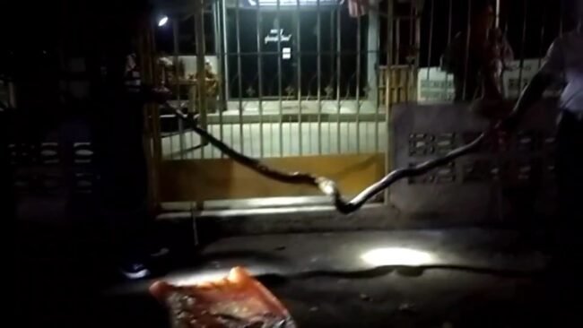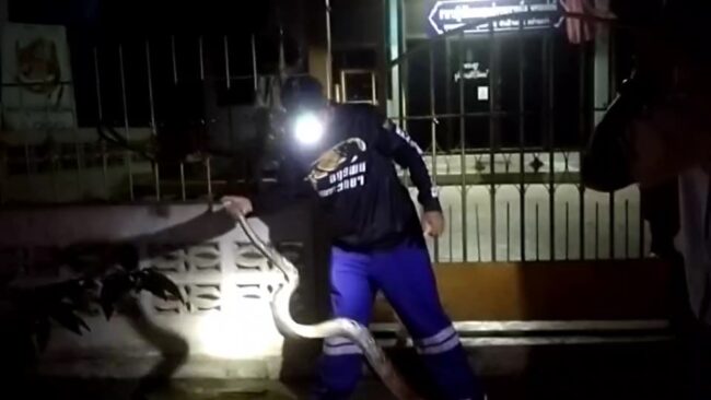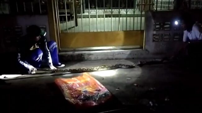 เจ้าหน้าที่จึงเข้าใช้อุปกรณ์ในการจับงูเข้าทำการจับงูทันที โดยใช้เวลาไม่นานนัก ก็สามารถจับงูเหลือมไว้ได้ นำมาวัดได้ความยาวประมาณ 2.40 เมตร น้ำหนัก 5 กิโลกรัม จึงเร่งนำใส่ประสอบเพื่อเตรียมนำไปปล่อยคืนสู่ป่าธรรมชาติเพื่อความปลอดภัย ต่อไป