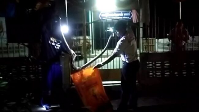 ดช.ณัฐวุฒิ แซ่หลี รีบขับรถไปยังวัดสันติวรคุณ ในเขตเทศบาลเมืองสะเดา เพื่อเข้าไปจับงู หลังจากที่ได้รับแจ้งจากนายดนวัชร ภู่แดง อายุ 30 ปี อยู่บ้านเลขที่ 240/4 ต.สะเดา อ.สะเดา ว่ามีงูเหลือมเลื้อยเข้ามาขวางที่ประตูเข้ากุฎิ หน่วยกู้ภัยฯจึงรีบขับไปยังจุดที่ได้รับแจ้ง เมื่อไปถึงเจ้าหน้าที่หน่วยกู้ภัยของศูนย์กู้ชีพไม้ขม เร่งนำอุปกรณ์ในการจับงูรุดเข้าตรวจสอบทันที เมื่อไปถึงประตูจะเข้ากุฎิภายในวัด ก็พบงูเหลือมนอนขวางทางเข้าประตูกุฎิ ทำให้พระไม่กล้าเดินเข้ากุฎิ เพราะกลัวงู
