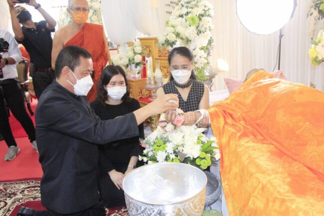 สงขลา-ผู้ว่าราชการจังหวัดสงขลา เป็นประธานในพิธีรดน้ำศพ คุณแม่จิ้ว บุญญามณี มารดานายนิพนธ์ บุญญามณี รองหัวหน้าพรรคประชาธิปัตย์