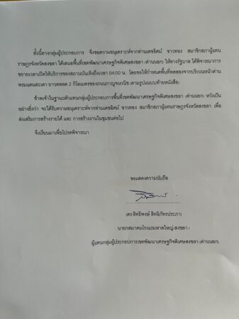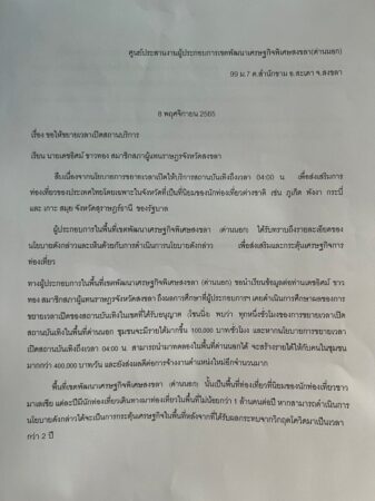 นายทุนสถานบันเทิง”ด่านนอก” ชายแดนไทย-มาเลเซีย ยื่นหนังสือขอเปิดสถานบริการถึง ตี 4 ต่อรัฐบาลผ่าน สส.เดชอิศม์ ขาวทอง ( นายกชาย ) อ้างผลการศึกษา สามารถสร้างรายได้ให้กับชุมชน ชั่วโมงละ 1 แสน