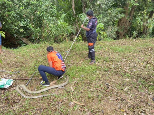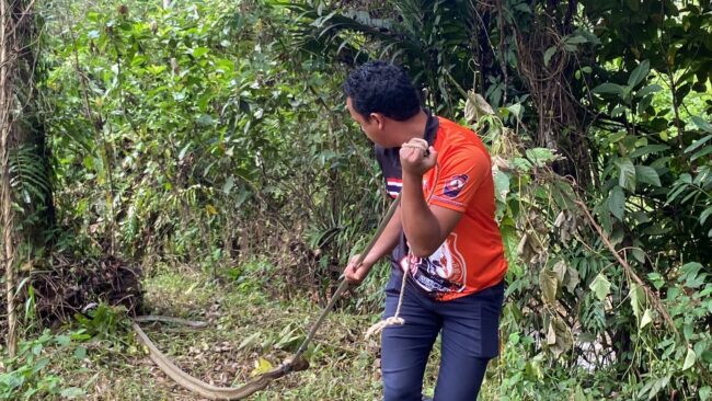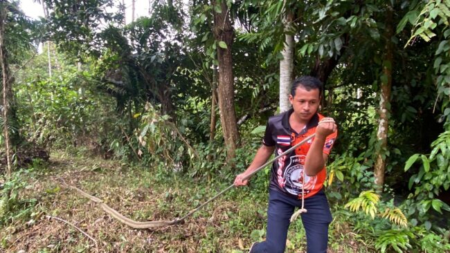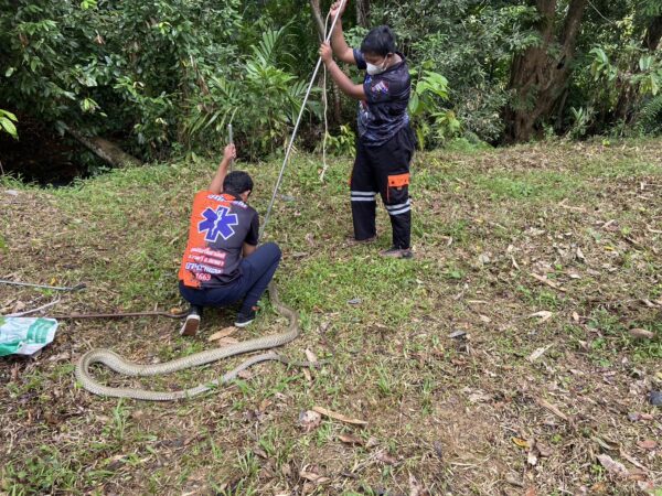 กู้ภัยอริโย ล่าจงอางยักษ์ ยาว 4 เมตร หนัก 10 กก.สงสัยเที่ยวลอยกระทงกลับป่าไม่ถูก