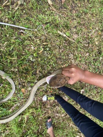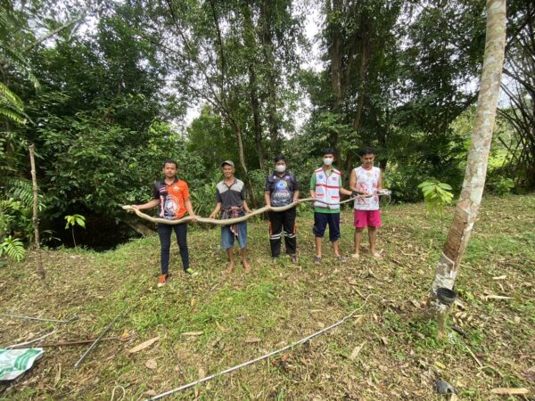 วันนี้ 11 พฤศจิกายบน 2565 ขณะที่นายปฏิพล มณีโชติ กำลังเข้ารับเวรเจ้าหน้าที่หน่วยกู้ภัยของมูลนิธิอริโยสามัคคีนาทวี อ.นาทวี จ.สงขลา อยู่ก็ได้รับแจ้งจากคนหาปลาชื่อนายชานน แก้วหนู อายุ 47 ปี อยู่หมู่ที่ 11 ต.นาทวี อ.นาทวี ว่าขณะที่ตนเองกำลังออกหาปลาไปตามห้วยน้ำ ก็พบงูขนาดใหญ่กำลังนอนอยู่ที่ใต้ต้นมะพร้าว ซึ่งสงสัยว่าอาจจะเลื้อยออกมาเที่ยวจนกลับป่าไม่ถูก จึงได้รีบโทรแจ้งเจ้าหน้าที่กู้ภัยของมูลนิธิอริโยฯมาช่วยจับงูตัวใหญ่ให้ด้วย