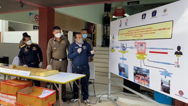 ตำรวจสงขลา ร่วมกับ ปปส.ภาค 9 จับกุมยาบ้าล๊อตใหญ่ 4 แสนเม็ดมูลค่า 12 ล้านบาท