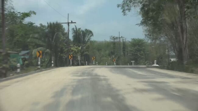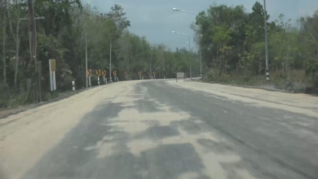 ถนนทางหลวงชนบทซ่อมเสร็จไม่กวาดดินทราย เวลารถวิ่งผ่านฝุ่นปลิวตลบ หวั่นเกิดอุบัติเหตุ วอนหน่วยงานช่วยกวาดดินทรายด้วย
