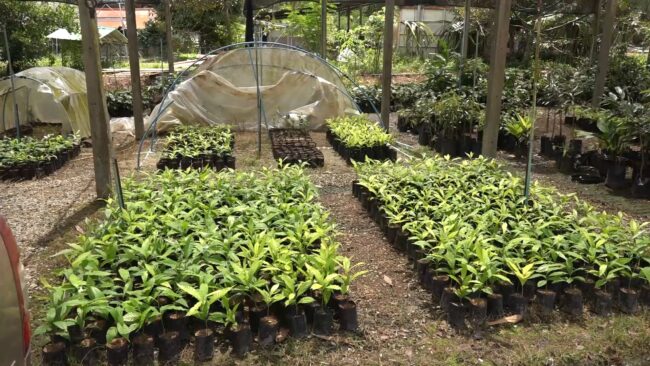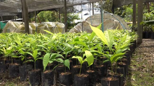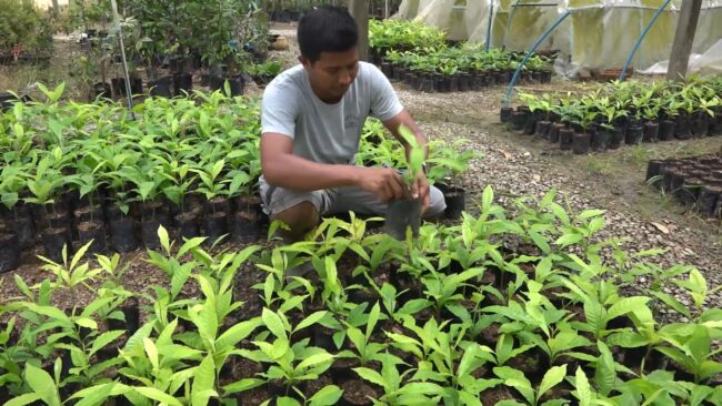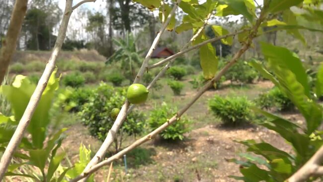 ทางด้าน นายเผชิญศักดิ์ สาสุธรรม เจ้าของร้าน“ปาดแม่โจ้พันธุ์ไม้” กล่าวว่า ต้นที่อยู่ด้านหลังคือต้นเอบิว หรือ บางคนเรียกอาบิว ซึ่งเป็นผลไม้ของต่างประเทศแถบแอฟริกาแล้วก็มาปลูกแถบอินโดนีเซีย เวียดนาม ฟิลิปปินส์ แล้วก็นำเข้ามาปลูกในประเทศไทย ช่วงแรกก็ปลูกในภาคเหนือ ผมก็สนใจก็เอามาลงปลูกในภาคใต้ จังหวัดสงขลา เอามาลองปลูกก็ให้ผลผลิตค่อนข้างที่จะเร็ว คือภายในหนึ่งปีก็เริ่มให้ผลผลิตแล้ว ส่วนการดูแลรักษาก็ง่าย ไม่ต้องใช้สารเคมี ไม่พึ่งสารเคมีในการดูแลรักษา ดังนั้นก็คือมันสามารถตอบโจทย์ ในการปลูกเพื่อสุขภาพ ปลูกต้นไม้ประเภทอินทรีย์ ที่เราไม่เน้นสารเคมี