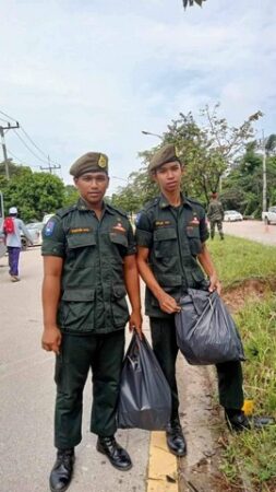 นราธิวาส-ผู้อำนวยการโรงเรียนธัญธารวิทยาจัดกำลังนักศึกษาวิชาทหาร ลงพื้นที่เกิดเหตุโกดังเก็บดอกไม้ไฟระเบิดที่ ตำบลมูโนะ
