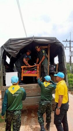 โดยร่วมกันกับชาวบ้านขนย้ายซากปรักหักพัง ทำความสะอาดพื้นฟูสภาพ เก็บกวาดบ้านและขยะตามถนนต่างๆ ซึ่งในแต่ละหลังนั้นต้องใช้เวลานานกว่าจะเสร็จ โดยส่วนใหญ่แล้วก็เหลือแต่ซากเท่านั้น บ้านเรือนที่ได้รับความเสียหายทั้งหมดจำนวน 682 ครัวเรือน ชาย 1,200 คน หญิง 1313 คน รวม 2513 คน มีผู้สียชีวิต 12 ราย บ้านเรือนได้รับความเสียหายเกือบทั้งหลัง ทรัพย์สินได้รับความเสียหายเกือบทั้งหมด
