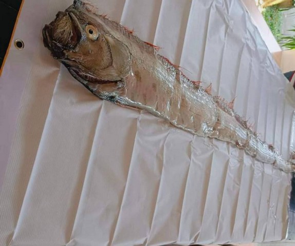 วันนี้ 4 มกราคม 2567 ที่สำนักงานประมงจังหวัดสตูล นักวิชาการประมงปฏิบัติการ สำนักงานประมงจังหวัดสตูล พร้อมเจ้าหน้าที่ นำปลาออร์ฟิช หรือที่ชาวบ้านเรียกปลาพญานาค หรือปลาริบบิ้น ตัวแรกของประเทศไทย พบที่บริเวณเกาะอาดัง และเกาะลิบง ขณะที่ติดเรืออวนดำของชาวประมง ก.เทพเจริญพร 15 (เมื่อวันที่ 3 ม.ค.2567) โดยชาวประมงที่พบเห็นว่าเป็นปลาที่แปลกและหายาก จึงมอบให้กับทางประมงจังหวัดสตูล นำมาตรวจสอบพบว่ามีความยาวถึง 2 เมตร 40 เซนติเมตร เป็นขนาดไม่โตเต็มวัย (จัดเป็นปลาที่มีกระดูกสันหลังยาวที่สุดในโลก ถ้าโตเต็มวัยจะยาวถึง 11 เมตร) กว้างประมาณ 1 คืบ ลำตัวไม่พบบาดแผล โดยมีครีบเป็นสีแดงอมชมพูยาวตลอดทั้งตัว มีหนวดยาว ลำตัวยาว มีเกล็ดสีเงิน ครีบสีแดงที่หัว จึงเป็นสัตว์น้ำที่หาชมได้ยาก มักจะอาศัยอยู่ในทะเลน้ำลึกระดับ 1,000 เมตรขึ้นไป