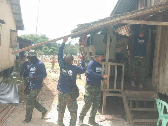 นราธิวาส-ศูนย์บรรเทาสาธารณภัยหน่วยเฉพาะกิจนาวิกโยธินภาคใต้ กองทัพเรือ (ศบภ.ฉก.นย.ภต.) ได้จากชุดทหารช่างฯ เข้าช่วยเหลือฟื้นฟูซ่อมแซมบ้านเรือน