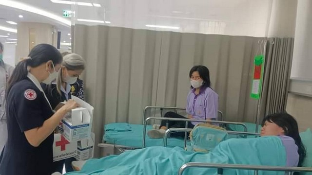 ปทุมธานี นายกเหล่ากาชาดจังหวัดปทุมธานีห่วงใย เข้าเยี่ยมให้กำลังใจนักเรียน หลังรถบัสรับส่งระหว่างเดินทางไปทัศนศึกษา เกิดอุบัติเหตุ