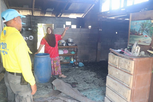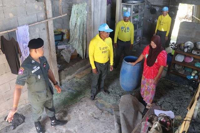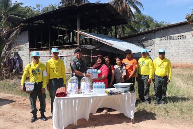 ร.ต.อ.พรเทพ หมื่นแกล้ว รอง ผบ.ร้อยฯ หน.ชุดช่วยเหลือผู้ประสบภัย พร้อม ข้าราชการตำรวจจิตอาสาอาสาภัยพิบัติ ร้อย ตชด.436 ลงพื้นที่เพื่อออกสำรวจความเสียหาย และมอบสิ่งของช่วยเหลือเบื้องต้น ให้แก่นางรอฝีอ๊ะ โกปบุเจ้าของบ้านประสบเหตุไฟไหม้(อัคคีภัย) พร้อมทั้งหาทางช่วยเหลือตามกำลังของหน่วยงานซึ่งลักษณ์เป็นบ้านสองชั้น(ชั้นล่างคอนกรีต ชั้นบนเป็นไม้) ส่วนสาเหตุเพลิงไหม้ในครั้งนี้คาดว่าเกิดจากไฟฟ้าลัดวงจร