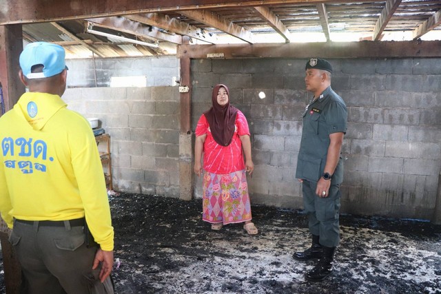 สตูล ตำรวจตระเวนชายแดนที่ 436 นำสิ่งของมอบให้ชาวบ้าน ต.บ้านควน อ.เมือง จ.สตูล ถูกไฟไหม้บ้าน