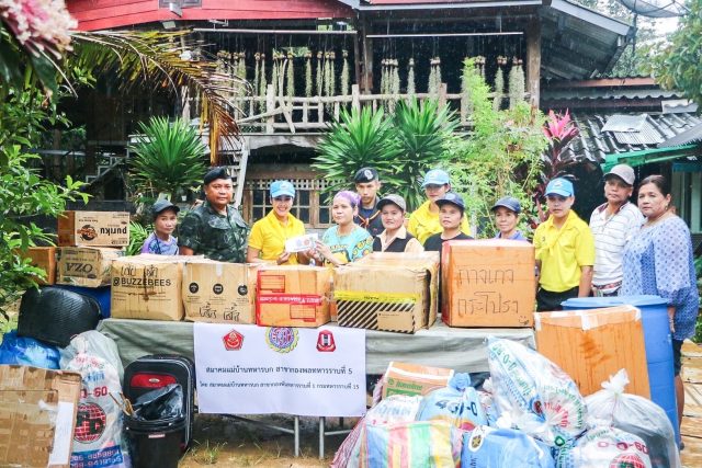 โดยเมื่อวันที่ 6 – 7 มกราคม 2566,พ.อ.ธนวัฒน์ สายสกุลรัตน์ ผู้บังคับกองพันทหารราบที่ 1 กรมทหารราบที่ 15 ร่วมกับเข้าหน้าที่ของหน่วยเฉพาะกิจกรมทหารพรานที่ 49 ได้นำสิ่งของที่รับบริจาคไปมอบให้กับพี่น้องประชาชนในพื้นที่ หมู่ 1 บ้านไอกาบู และพื้นที่ หมู่ 6 บ้านลีนานนท์ ต.สุคีริน อ.สุคีริน จ.นราธิวาส โดยคุณชฎาภรณ์ แจ่มแจ้ง ประธานสมาคมแม่บ้านทหารบก สาขา กองพลทหารราบที่ 5 ได้ร่วมบริจาคเงินเพื่อนำไปจัดซื้อเครื่องอุปโภคบริโภคที่จำเป็น สำหรับบรรเทาความเดือดร้อนเบื้องต้นในพื้นที่ต่อไป