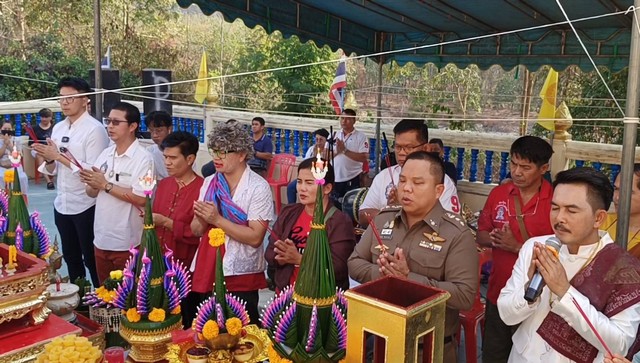 โดยก่อนเริ่มพิธีมี พ.ต.อ.วีพงษ์ กงแก้ว ผกก.สภ.เมืองระยอง เป็นประธานจุดเทียนบูชาพระรัตนตรัย พ.ต.อ.อภิชนัน วัฒนวรางกูร ผกก.สส.ภ.จว.ระยอง ถวายเทียนและจุดเทียนชัย พ.ต.ท.วิรัตน์ เทศทอง รอง ผกก.จร.สภ.เมืองระยอง จุดเทียนบารตน้ำมนต์หลวงปู่ทิม พ.ต.ต.สัญชัย จิระสกุล สารวัตรกองกำกับการสืบสวน ภ.จว.ระยอง จุดเทียนหลวงปู่ทองสุข พ.ต.ต.สมบัติ ถำวารี สว.จร.สภ.เมืองระยอง จุดเทียนหลวงปู่ฮกและท่านเจ้าคุณพร้อม นายทวีอัมพรมหา (ขาวผ่อง)จุดเทียนหลวงพ่อสมัย นายสามารถ พยัคฆ์อรุณ จุดเทียนหลวงพ่อรมย์ ปอยฝ้าย มาลัยพร จุดเทียนหลวงพ่อเชย เมื่อจุดเทียนบารตน้ำมนต์และบูชาพระรัตนตรัยเสร็จสิ้น ได้เชิญพระเดชพระคุณหลวงปู่ทองสุข ลัทธฺเมโธ เป็นองค์ประธานจุดเทียนชัยด้านหน้า และเริ่มพุทธาภิเษก บรรยากาศภายในพิธีเต็มไปด้วยความเข้มขลัง