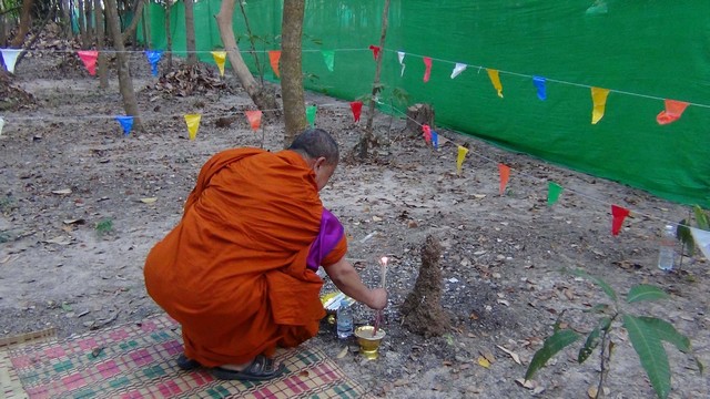 พระมหาเกษมณี เตชปณํโณ เจ้าอาวาส เปิดเผยว่า ได้นำกลุ่มพระเณรในวัด พร้อมด้วยชาวบ้านมาทำความสะอาดปัดกวาดลานพื้นที่บริเวณที่จะปฏิบัติธรรมของพระสงฆ์ ซึ่งเป็นโครงการปฏิบัติธรรมประจำปีของวัดป่าวิเวก กำหนดวันที่ 20-24 ม.ค นี้ แต่ได้มาเจอจอมปลวกพระพุทธรูปนั่งปางมารวิชัย ชาวบ้านจึงได้จุดธูปเทียน มองดูแล้วเหมือนองค์พระพุทธรูป คิดว่าเป็นสิ่งที่เป็นสิริมงคลในการเริ่มจะปฏิบัติธรรม ในการเตรียมงานบรรดาญาติโยมเมื่อได้พบเห็นต่างก็ดีใจว่า เป็นสิ่งศักดิ์สิทธิ์ที่เกิดขึ้นในป่าปฏิบัติธรรมในวัดแห่งนี้ ซึ่งเป็นที่ปฏิบัติธรรมของจังหวัดมุกดาหารแห่งที่ 7 พร้อมกันนี้จึงขอเรียนเชิญพุทธศาสนิกชนบรรดาญาติโยมมาปฏิบัติธรรม และมาร่วมบุญร่วมเป็นเจ้าภาพภัตราหารและน้ำปานะ แต่พระสงฆ์ประมาณ 100 รูป ซึ่งที่ผ่านมาในพื้นที่บริเวณนี้ไม่เคยพบจอมปลวกแบบนี้มาก่อน จึงถือเป็นนิมิตรหมายที่ดี ขณะนี้ทางวัดได้กั้นพื้นที่รังจอมปลวกพระพุทธรูป เป็นเขตแดนไว้