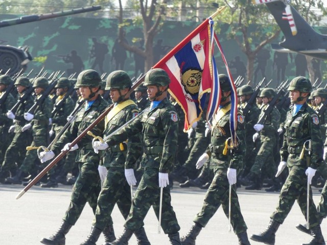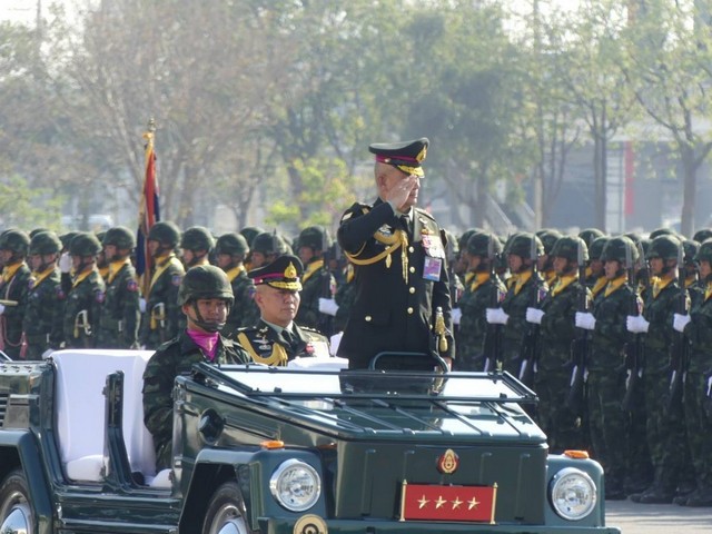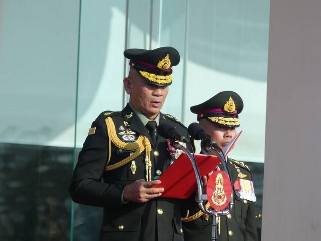 ต่อมาผู้บัญชาการทหารบกได้นำปฏิญาณตนและให้โอวาทอ่านสารของผู้บัญชาการทหารสูงสุด ในการนี้กองผสมได้สั่งสวนสนามของกำลังพลประกอบไปด้วยกรมสวนสนามจำนวน 4 กรม 16 กองพัน กรมทหารราบที่ 31 รักษาพระองค์ กรมทหารม้าที่ 5 รักษาพระองค์ กรมทหารปืนใหญ่ต่อสู้อากาศยานที่ 1 และกรมปืนใหญ่ที่ 72 โดยมีพลตรีสิทธิพร จุลปานะ ผู้บัญชาการกองพลที่ 1 รักษาพระองค์เป็นผู้บังคับกองผสม โดยผู้บัญชาการทหารบกได้ให้โอวาทแก่เหล่าทหารที่ร่วมพิธี กระทำสัตย์ปฏิญาณต่อธงชัยเฉลิมพล โดยให้ทุกท่านยึดมั่นในคำสัตย์ปฎิญานที่ให้ไว้อย่างเคร่งครัดและภูมิใจในเกียรติและศักดิ์ศรี ให้ตั้งมั่นในอุดมการณ์ของการเป็นทหารอาชีพปฏิบัติหน้าที่เต็มกำลังความสามารถและเสียสละเพื่อพิทักษ์ค้ำจุนประเทศชาติราชบัลลังก์ตลอดจนคุ้มครองประชาชนและแผ่นดินไทยและพัฒนาตนเองให้เข้มแข็งอยู่เสมอและสร้างสรรค์คุณประโยชน์ให้แก่สังคมโดยรวมและประเทศชาติสามารถขับเคลื่อนไปข้างหน้าอย่างมั่นคงต่อไป