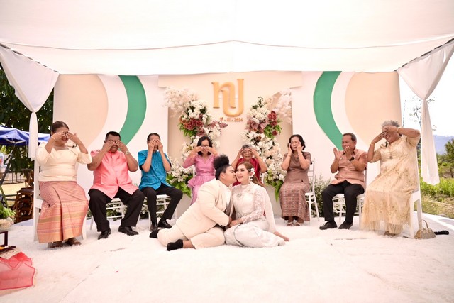 สุดท้ายเรื่องของความสุขความสบายใจเรื่องที่ทำให้เดินไปข้างหน้าสิ่งที่ดีขึ้น ไม่ว่าจะเป็นเพศไหนก็ตาม อยากให้โฟกัสเรื่องของความสุขและเรื่องที่ทำให้มีความทุกข์น้อยที่สุด ถ้าคุณเจอคนที่ทำให้มีความสุขและมีความทุกข์น้อยลงคุณจะสบายใจและมีชีวิตคู่ที่ยืนยาวเหมือนเราสองคน นายอำนาจ กวางแก้ว พ่อของเจ้าสาวกล่าวว่า ในเรื่องของความสัมพันธ์ไม่เคยทำให้มีเรื่องไม่สบายใจ คุณพ่อคุณแม่ทั้งสองโฟกัสเรื่องของลูกมีความสุข