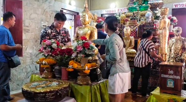 วันหยุดนักท่องเที่ยวเข้ากราบไหว้หลวงพ่อปากแดง เพื่อขอพร ขอใชคลาภ ธุรกิจ หน้าที่การงาน