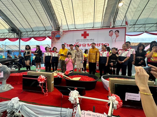 จากนั้นทางคณะกรรมการเหล่ากาชาด จ.กาฬสินธุ์ พาผู้โชคดีที่ได้รับรางวัลฟ้อนรำตามจังหวะดนตรี บรรยากาศเป็นไปด้วยความสนุกสนานคึกคัก มีความสุขทั้งผู้ให้และผู้ที่ได้รับรางวัล อิ่มบุญ อิ่มสุข อิ่มใจในการนำรายได้เพื่อไปช่วยเหลือสังคมกลุ่มเปราะบาง ผู้ด้อยโอกาส ผู้ประสบภัยทุกรูปแบบ