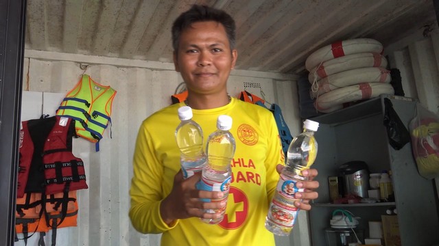 นายจักรกฤษณ์ รัตนธรรม หัวหน้าชุดไลฟ์การ์ด กล่าวว่า ช่วงนี้เป็นช่วงเริ่มฤดูร้อนเป็นช่วงฤดูของแมงกะพรุน ตอนนี้ที่กำลังระบาดหนักก็คือ แมงกะพรุนหัวขวดตัวนี้มีพิษร้ายแรงมาก หากมาเล่นน้ำก็ให้สังเกต ป้ายเตือน ธงเตือน ที่ติดอยู่บริเวณริมชายหาด หากโดนพิษแมงกะพรุนก็ให้ราดน้ำส้มสายชูอย่างเดียว ห้ามโดนน้ำจืดหรือใช้อะไรขัดถูอันนี้ห้ามเลย หากประชาชนต้องการความช่วยเหลือก็เข้ามาติดต่อได้ ที่ศูนย์ช่วยเหลือของชุดไลฟ์การ์ดโดยตรง จะมีน้ำส้มสายชูไว้คอยบริการประชาชนตลอดเวลา