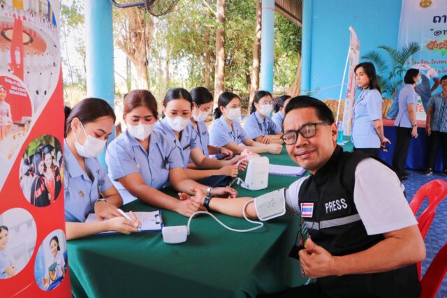 เมื่อวันที่ 5 มีนาคม 2567 เวลา 11.00 น. สื่อมวลชนปทุมธานีร่วมกับสสส. และสมาคมการค้าธุรกิจอาหาร จัดกิจกรรมวันนักข่าวมอบถาดหลุมอาหารให้กับเด็กนักเรียน ให้โรงเรียนวัดสหราษฎร์บำรุงตำบลคลองควาย อำเภอสามโคก จังหวัดปทุมธานี โดยได้รับเกียรติจาก ดร.ณัจยา แก้วนุ้ย (ดร.จิ) ผู้จัดการโครงการขับเคลื่อนระบบอาหารปลอดภัยฯ (สสส.) ประธานในพิธี พร้อมด้วย อาจารย์ฉัตรสิรื ฉัตรภูติ และ อาจารย์พัชรนันท์ รัตนภาค คณะพยาบาลศาสตร์ มหาวิทยาลัยชินวัตร นำคณะนักศึกษาคณะพยาบาลศาสตร์ มหาวิทยาลัยชินวัตร มาบริการตรวจสุขภาพเบื้องต้นให้กับผู้เข้าร่วมงาน และประชาชนในพื้นที่ได้นำไก่ทอด ข้าวเหนียว, น้ำผลไม้ พร้อมทั้ง ผลไม้แตงโม , ขนมขบเคี้ยว และ อุปกรณ์เครื่องเขียน มามอบให้กับเด็กๆนักเรียน อีกด้วย