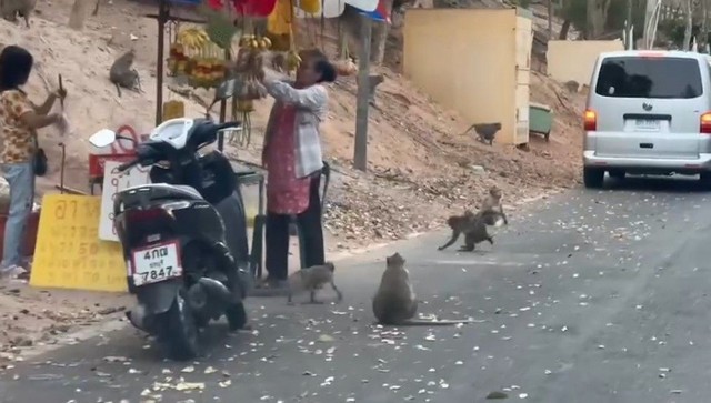 เมื่อช่วงเย็นวันที่ 8 มีนาคม 2567 ที่ เขาสามมุก ติดหาดบางแสน ตำบลแสนสุข อำเภอเมือง จังหวัดชลบุรี พบว่ามีลิงลงมาจากเขาเป็นจำนวนมาก ซึ่งในช่วงกลางวันอากาศร้อน ลิงจะลงช่วงเย็นมีอาการหิวโหย มานั่งรอนักท่องเที่ยวซื้ออาหารให้กิน ลิงบางตัวก็จะขึ้นไปกินขึ้นไปบนรถบางจังหวะเหมือนพยายามเปิดประตูแล้วก็ขึ้นไปนั่งบนกระจก