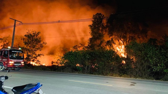 กระบี่-นายอำเภอระดมรถดับเพลิง3ตำบลเข้าพื้นที่ ไฟไหม้ป่าเสม็ดที่เกาะลันตาห่างโรงพยาบาลแค่ 2 กม.ล่าสุดควบคุมไฟได้แล้ว