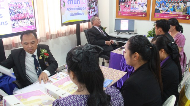 คณะกรรมการประเมิน ได้เยี่ยมชมนิทรรศการสิ่งประดิษฐ์ ฐานการเรียนรู้เศรษฐกิจพอเพียง ผลงานวิชาการ และศูนย์บ่มเพาะ จากนั้นจ่าสิบเอกสมพร ชูทอง ประธานอนุกรรมการประเมิน ได้ชี้แจงวัตถุประสงค์และแนวทางในการประเมินสถานศึกษาเพื่อขอรับรางวัลพระราชทาน ประจำปีการศึกษา 2566 จากนั้นคณะกรรมการประเมินได้ทำการประเมินเอกสาร หลักฐานและร่องรอยทั้ง 6 ด้าน เพื่อประกอบการพิจารณารางวัลพระราชทาน