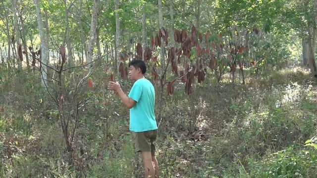 วันนี้ 7 เมษายน 2567 ที่หมู่ที่ 4 ต.ท่าโพธิ์ อ.สะเดา จ.สงขลา ซึ่งทางภาคใต้เป็นฤดูร้อน และฝนทิ้งช่วง ทำให้ชาวสวนที่ปลูกต้นโกโก้ ต้องประสบปัญหาต้นโกโก้ ที่ปลูกมานานเกือบ 2 ปี บางต้นถึงกับยืนต้นตาย ทำให้รายได้จากการขายผลโกโก้ ต้องขาดทุน เนื่องจากต้นโกโก้ 1 ต้น จะให้ผลโกโก้ ได้มากถึง 10ๆ กิโลกรัม ต่อต้น ซึ่งพอเข้าฤดูร้อน ฝนทิ้งช่วง มาประสบปัญหาต้นโกโก้ยืนต้นตายเข้าไปอีก