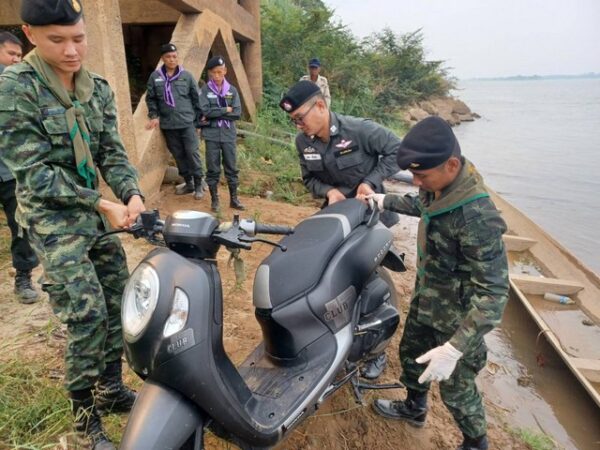 เจ้าหน้าที่จึงนำกำลังร่วมเข้าตรวจสอบตรงจุดที่ได้รับแจ้ง พบรถ จยย.จำนวน 4 คันจอดอยู่ริมตลิ่งแม่น้ำโขงรอแก๊งโจรกรรมรถข้ามชาติฝั่งประเทศเพื่อนบ้านขับเรือเหล็กขนาดใหญ่ติดเครืองยนต์หางยาวลักลอบข้ามมาฝั่งไทย