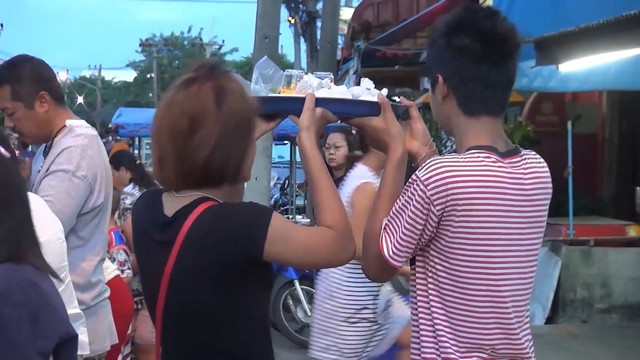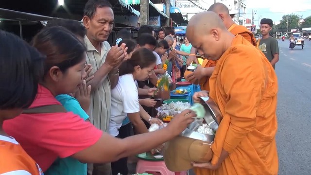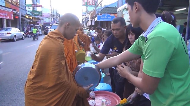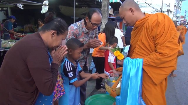 สงขลา-ชาวสงขลา นำอาหารหวานคาวมาทำบุญตักบาตรพระสงฆ์เนื่องในวันครอบครัว เพื่อความเป็นสิริมงคลแก่ตนเองและครอบครัว