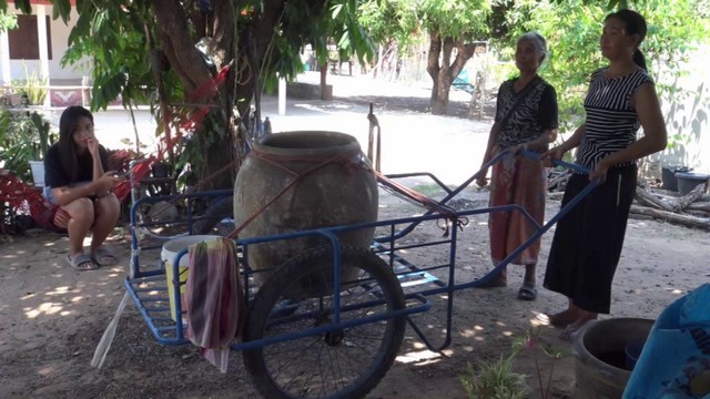 โดยบางครอบครัวที่มีกำลังทรัพย์ก็ลงทุนเจาะบ่อบาดาลสูบน้ำขึ้นมาใช้เองบ่อละหลายหมื่นบาทแต่ชาวบ้านส่วนใหญ่ก็จะพากันนำโอ่งน้ำใส่รถเข็ญที่มีอยู่นำไปบรรทุกน้ำจากบ่อน้ำที่อยู่ห่างไกลหมู่บ้านหรือบางคนก็จะไปขอน้ำจากคนที่มีบ่อบาดาลเป็นของตัวเองเพื่อนำน้ำกลับมาใช้ในชีวิตประจำวันเป็นการชั่วคราวไปก่อน เนื่องจากน้ำประปาของหมู่บ้านไม่ไหลมานานเกือบจะ 1 เดือนแล้ว เพราะบ่อบาดาลที่ใช้สูบน้ำดิบขึ้นมาผลิตน้ำประปาของหมู่บ้านขณะนี้พบว่าปริมาณน้ำเหลือน้อยและบางวันแห้งขอดจนไม่สามารถสูบน้ำขึ้นมาผลิตน้ำประปาได้จนทำให้น้ำประปาไม่ไหลและบางวันก็ไหลน้อย