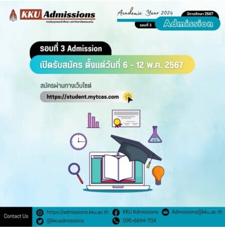 สำหรับผู้ที่สนใจศึกษาต่อคณะบริหารธุรกิจและการบัญชี สามารถดูรายละเอียดได้ที่เว็บไซต์ https://admissions.kku.ac.th/ หรือสอบถามข้อมูลเพิ่มเติมได้ที่ โทร. 0 4320 2401, 0 4320 2342, 0 4320 2344