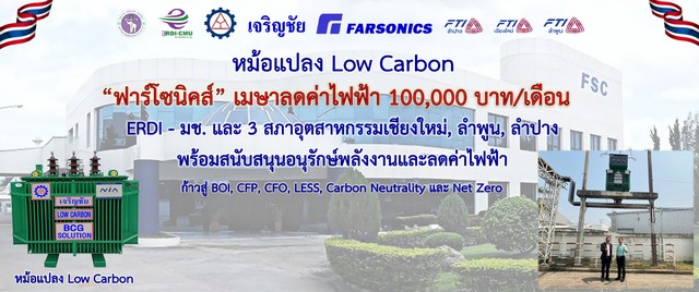 บจ.ฟาร์โซนิคส์ (ลำพูน) เมษาลดค่าไฟฟ้า 100,000 บาท/เดือน พร้อมการสนับสนุนอนุรักษ์พลังงานโดย มหาวิทยาลัยเชียงใหม่ / มหาวิยาลัยราชภัฏลำปาง / สภาอุตสาหกรรมจังหวัดเชียงใหม่ ลำพูน และลำปาง อย่างต่อเนื่องก้าวสู่ LESS, CFP, CFO, BOI, Carbon Credit, Net Zero, Carbon Neutrality