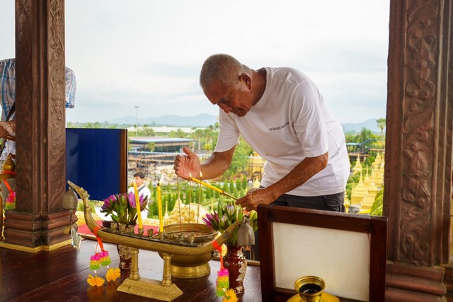 วันนี้ เวลา 09.00 น. นายกัมพล ตันสัจจา ประธานสวนนงนุชพัทยา พร้อมคณะผู้บริหาร ร่วมประกอบพิธีเปลี่ยน “ธงมนตรา” จาก ประเทศภูฏาน จำนวน 9 ผืน ได้นิมนต์พระครูเกษมกิตติโสภณ เจ้าอาวาสวัดสามัคคีบรรพต และพระสงฆ์รวมจำนวน 9 รูป มาประกอบพิธีปิดทอง เจิม ธงมนตรา พร้อมสวดชัยมงคลคาถาในพิธี