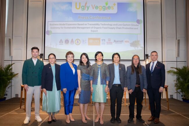 รองศาสตราจารย์ ดร.ภาณินี นฤธาราดลย์ ผู้อำนวยการศูนย์นวัตกรรมและสังคมแห่งความยั่งยืน สังกัดวิทยาลัยนานาชาติ มหาวิทยาลัยขอนแก่นและยังเป็นผู้อำนวยการโครงการวิจัยนี้ กล่าวว่า “วัตถุประสงค์ของการแถลงข่าวในครั้งนี้เพื่อประชาสัมพันธ์และเปิดตัวโครงการ Ugly Veggies Plus – การต่อยอดแบบจำลองธุรกิจบนพื้นฐานของเทคโนโลยีการตรวจสอบย้อนกลับและเศรษฐกิจหมุนเวียนคาร์บอนต่ำเพื่อการจัดการห่วงโซ่อุปทานการผลิตและการส่งออกของสินค้าอาหารอินทรีย์อย่างยั่งยืน ซึ่งได้รับการสนับสนุนงบประมาณดำเนินการจาก แผนงานกลุ่มเศรษฐกิจหมุนเวียน หน่วยบริหารและจัดการทุนด้านการเพิ่มความสามารถในการแข่งขันของประเทศ (บพข.) ภายใต้การกำกับของสำนักงานสภานโยบายการอุดมศึกษา วิทยาศาสตร์ วิจัยและนวัตกรรมแห่งชาติ (สอวช.)”