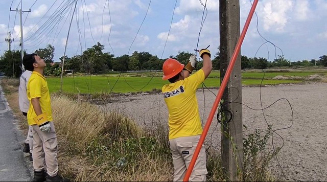 สายสื่อสารไปพาดถูกสายไฟแรงสูงร่วงลงพื้นเป็นทางยาวสุนัขไปวิ่งเล่นใกล้เสาไฟถูกไฟช็อตเสียชีวิต 3 ตัวโชคดีที่ไม่มีคนได้รับอันตราย