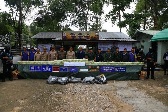 บึงกาฬ -แถลงข่าวตรวจยึดจับกุมผู้ต้องหา1ราย พร้อมของกลางยาไอซ์ จำนวน 5 กระสอบ น้ำหนัก 200 กก. และรถยนต์กระบะ 1 คัน