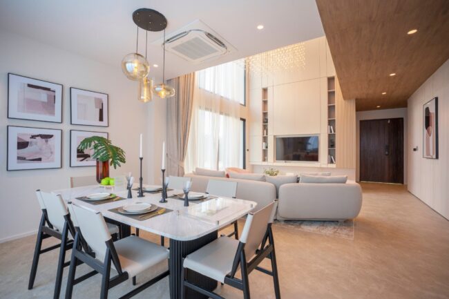 การออกแบบดีไซน์แสดงออกถึงความเป็นธรรมชาติของโครงการที่มีจุดเด่น คือ เพดานบ้านสูง (Double Volume) 6.6 เมตร บริเวณ Living Area ทุกหลัง อากาศหมุนเวียน ถ่ายเทสะดวก ให้ความรู้สึกปลอดโปร่ง โล่งสบาย กว้างขวาง สว่าง สง่างาม และโดดเด่น โถสุขภัณฑ์แบบ Smart Toilet ที่จอดรถกว้างสามารถจอดได้สะดวก รับประกันโครงสร้างบ้าน 10 ปี