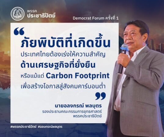 พรรคประชาธิปัตย์ได้จัดงาน“เดโมแครต ฟอรั่ม (Democrat Forum)ครั้งที่ 1” หัวข้อ“เศรษฐกิจคาร์บอน: โอกาสในวิกฤตโลกรวนน้ำท่วมภัยแล้งสุดขั้ว“
