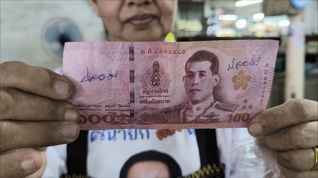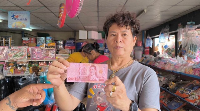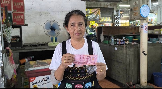 แม่ค้าจังหวัดนครนายก โดนแบงค์ 100 บาทปลอม 3 ใบมาซื้อของไป 3 ร้านค้าพบเลขที่แบงค์เป็นตัวเลขเดียวกันทั้งหมด